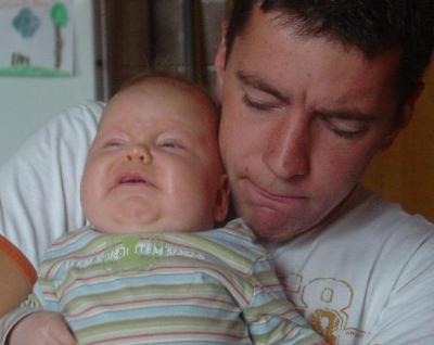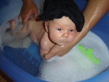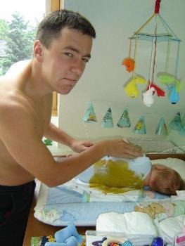 auch das gehört zum Baby-Alltag - Kacke bis zum Hals, und das am frühen Morgen auf nüchternen Magen ...